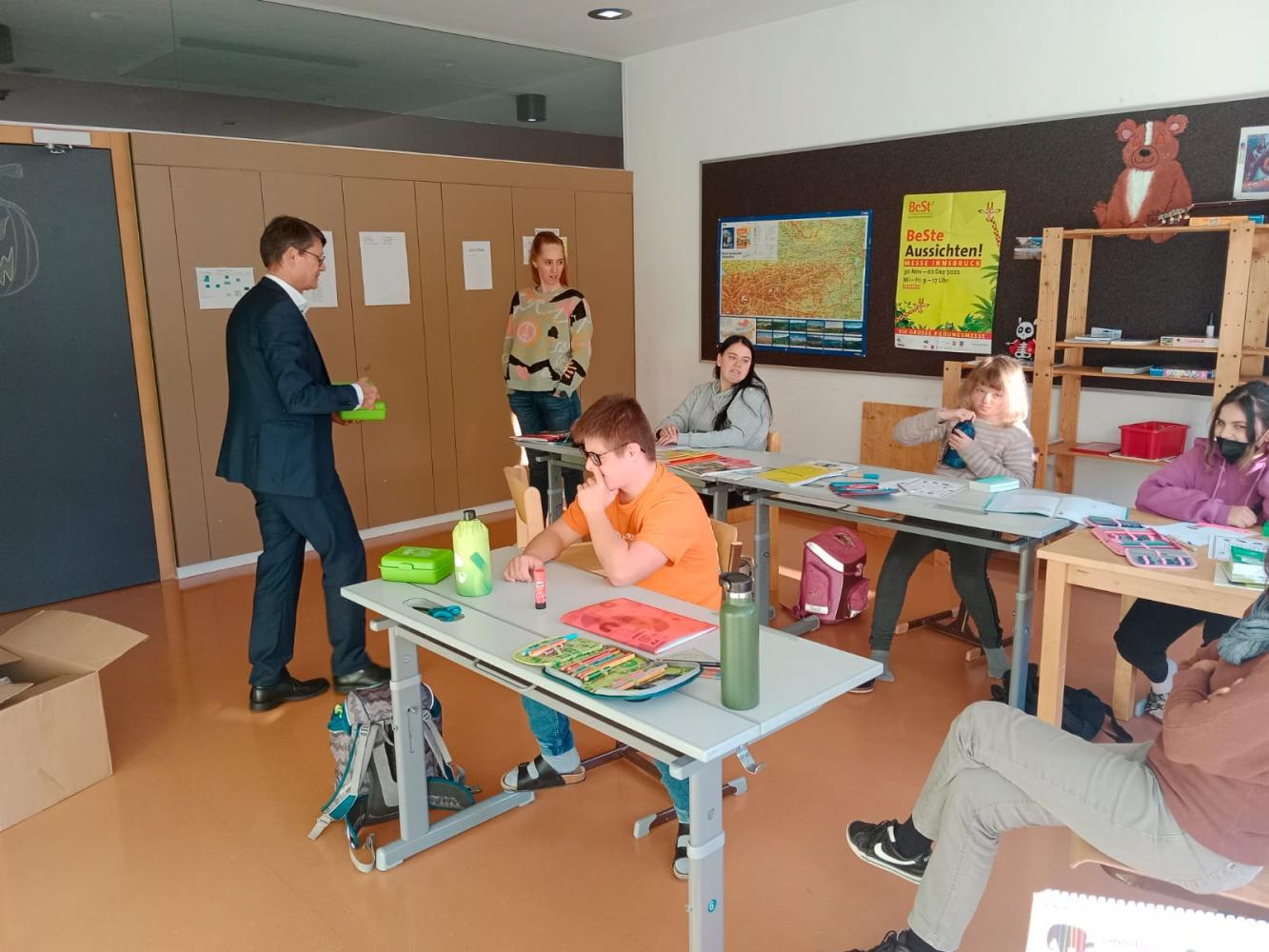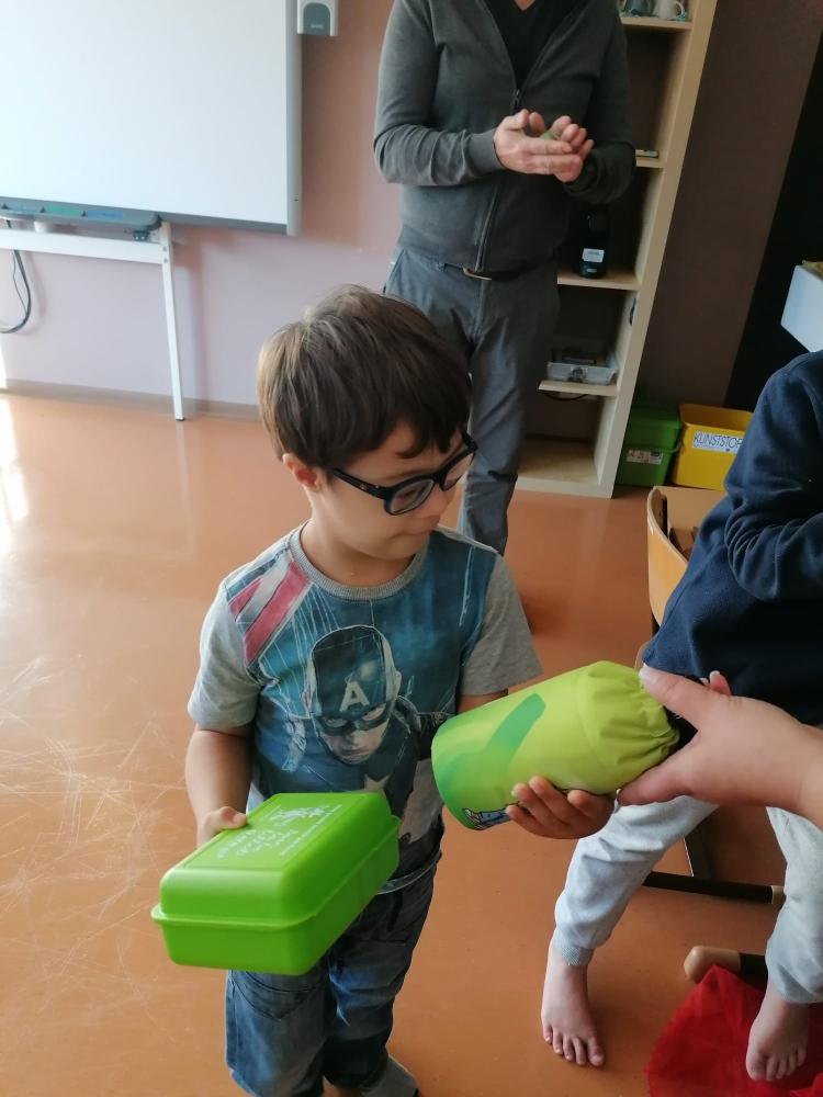 Nun durften sich auch die Sonderschulklassen der VS Am Anger über die Geschenke unter dem Motto "Müllvermeidung" freuen. Der Bürgermeister Thomas Öfner und Gerd Plattner vom Recyclinghof Zirl besuchten uns erneut und gaben uns viele interessante Informationen und Tipps mit auf den Weg. Vielen Dank!
