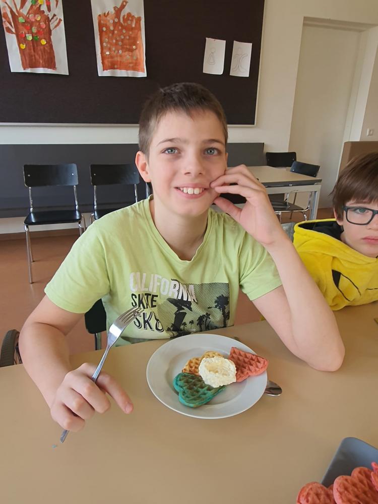Bunte Waffeln von Johanna Weithaler 06. März 2025 Schuljahr 2024/25 3ASO Dafür mussten wir das Rezept genau lesen und die Waffeln Schritt für Schritt nach Anleitung zubereiten. Wir hatten viel Spaß und es schmeckte allen sehr gut.