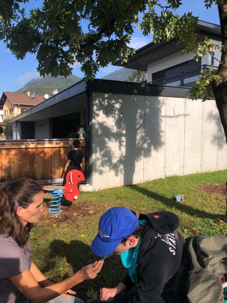 Rund um Zirl ging die 2 E. Dem Schlossbach entlang zum Sielplatz am Kriegerdenkmal, dann dem Embach folgend bis zu Marie in den Garten wurde fleißig gewandert. Dort wurde eine Pause gemacht und gut gejausnet. Danach ging es mit einem Kurzbesuch beim Äuelespielplatz zurück zur Schule.