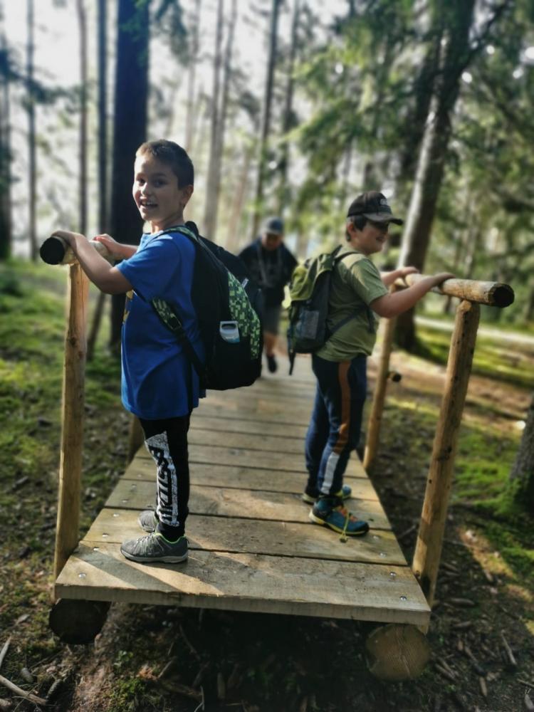 Am weitesten kamen wohl die Großen. Zuerst fuhren sie mit dem Zug nach Stams. Von dort aus wanderten sie über die große Hängebrücke bis zur Kirche Locherboden.