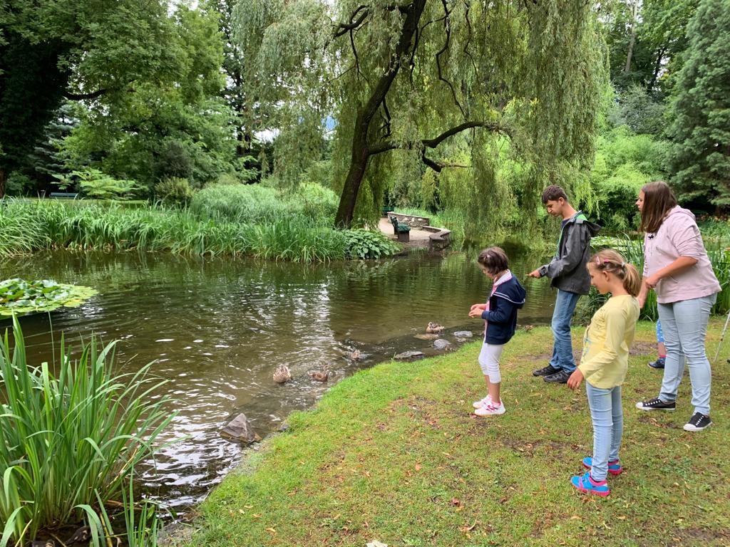 Wer glaubt, Sommer in der Schule ist langweilig und eine Katastrophe, liegt falsch. Natürlich dienen die Sommerferien zur Erholung und zum Spaß haben! Unsere erfahrenen Schulassistentinnen, die die Kinder auch unterm Schuljahr betreuen, haben wieder ein buntes Sommerprogramm zusammengestellt. Bei Schönwetter wurden die schönsten Plätze in der Umgebung erkundet, manchmal ging es sogar hoch hinaus! Auch bei Schlechtwetter muss man nicht unbedingt im Haus bleiben. Unter dem Vordach am Flughafen wird man zum Beispiel auch nicht nass ...