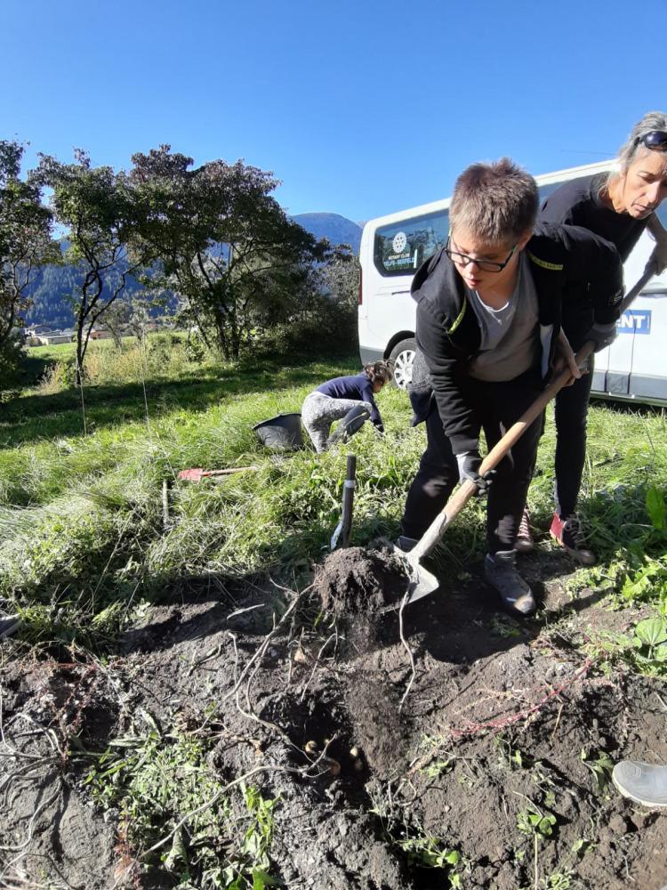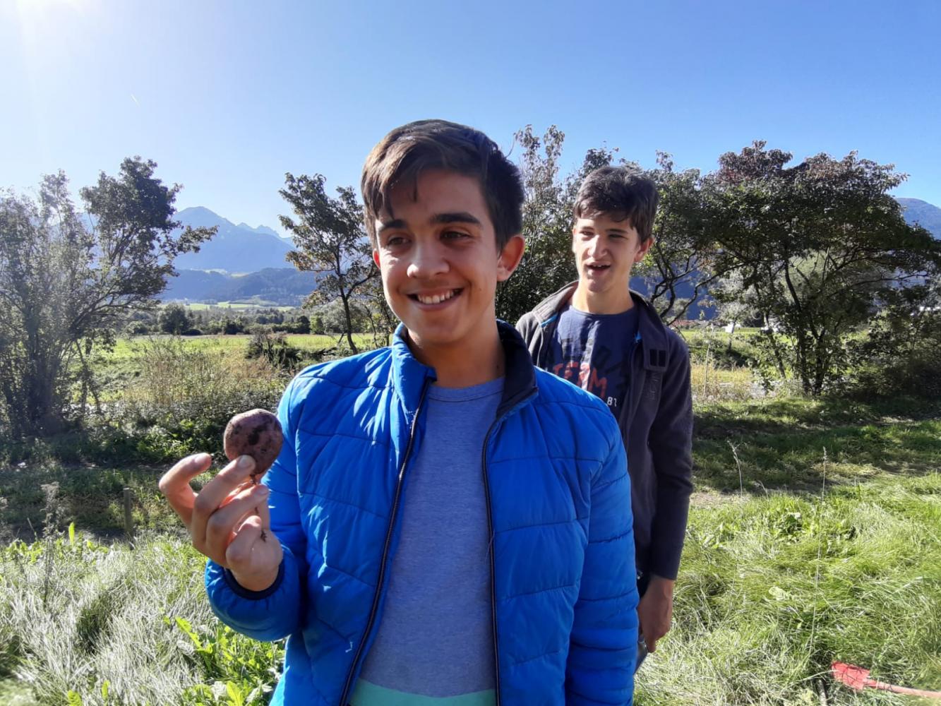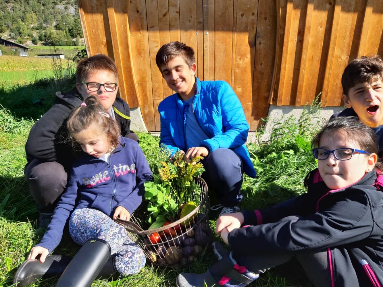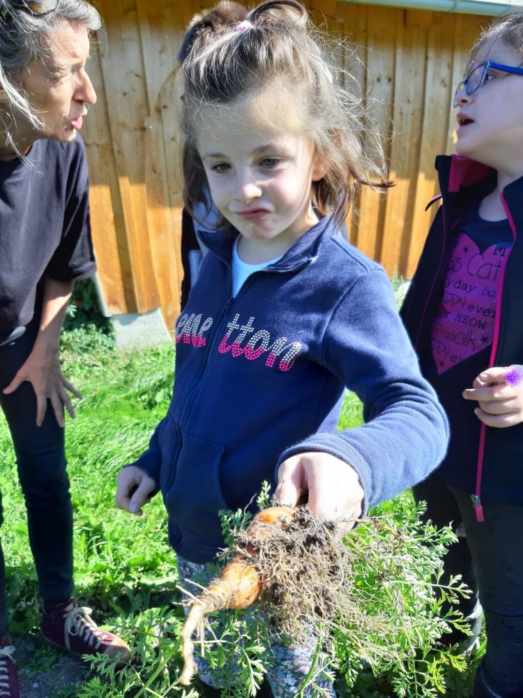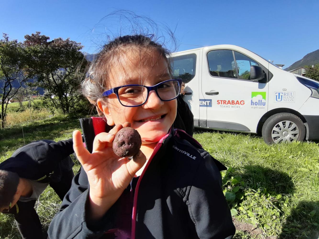 Der Garten von Sandra ist den Kindern aus der 2E schon bestens bekannt. Dort gibt es derzeit viel zu ernten, also machten wir uns auf zu Sandra und halfen bei der Ernte mit. Kartoffel und Karotten wurden aus der Erde gezogen und Tomaten, Gurken und allerlei Kräuter wurden geerntet. So kam schnell ein ganzer Korb mit guten Dingen zusammen, die wir auch mitnehmen durften. Vielen Dank an Sandra!