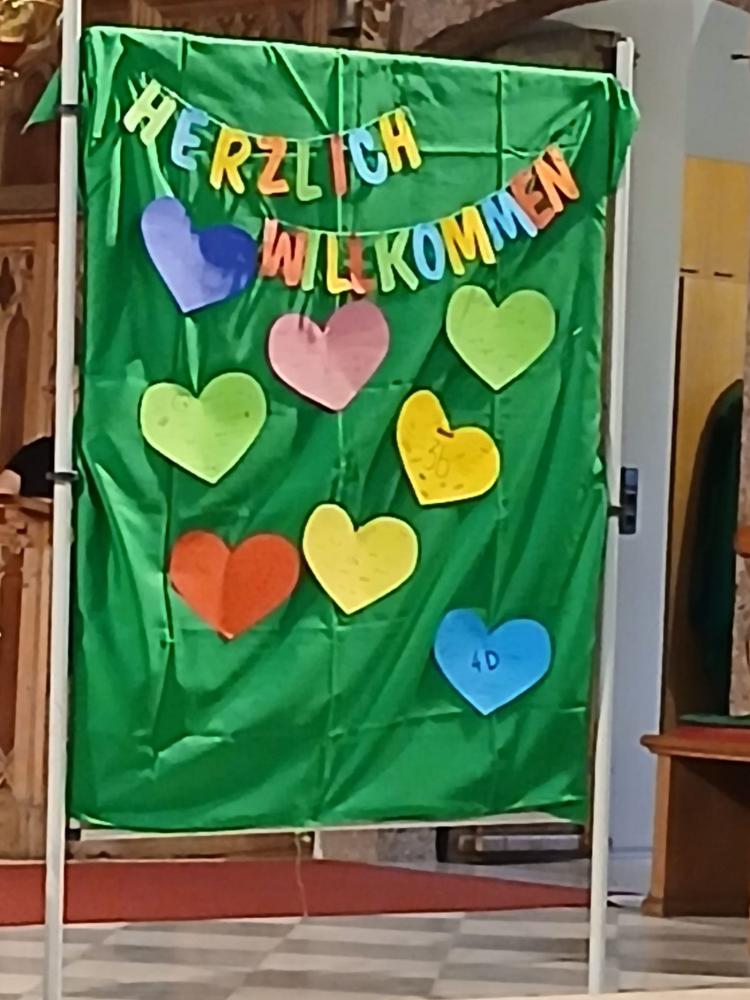 Als Zeichen für unsere Bemühen um eine HERZ-liche Schulgemeinschaft hat jede Klasse ein Herz vorbereitet, welche zu Beginn des Gottesdienstes vorne auf die Pinnwand geheftet wurden.