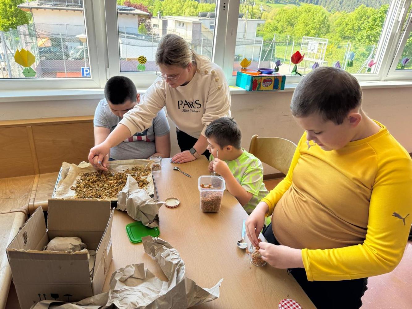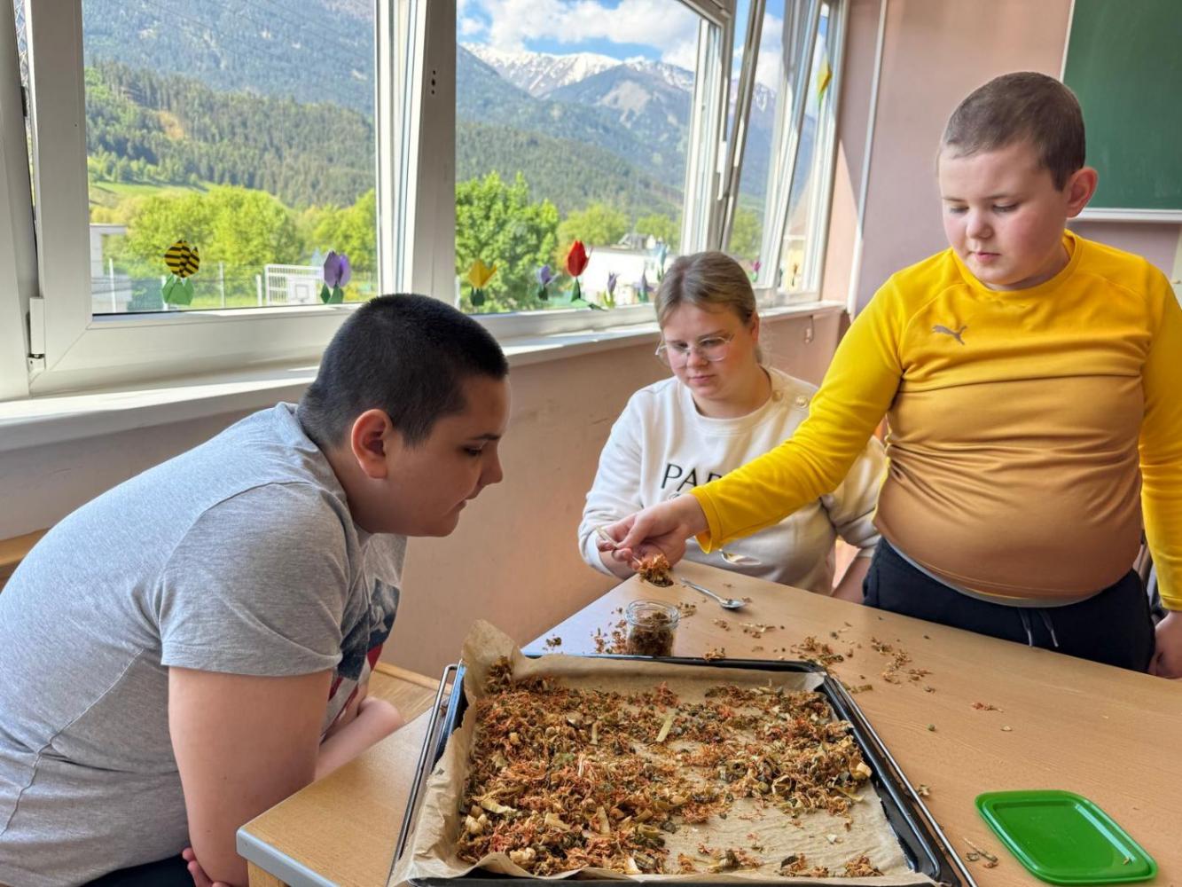 Muttertag E1 von Johanna Weithaler 11. Mai 2025 2ASO Schuljahr 2024/25 Beim Kosten der leckeren Gemüsechips für die Suppe konnte kaum einer widerstehen.