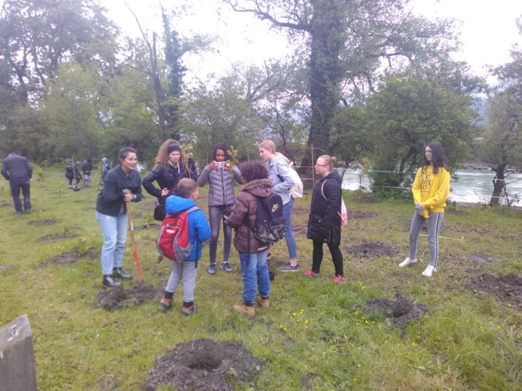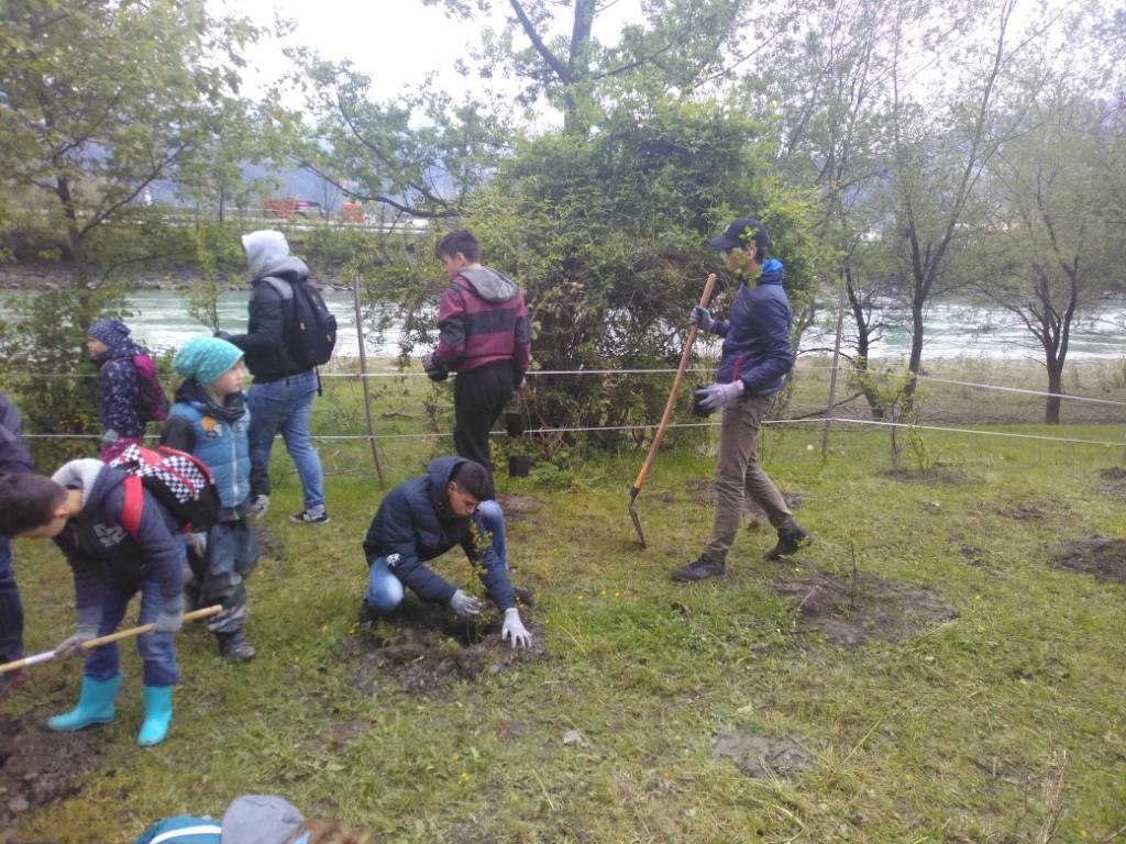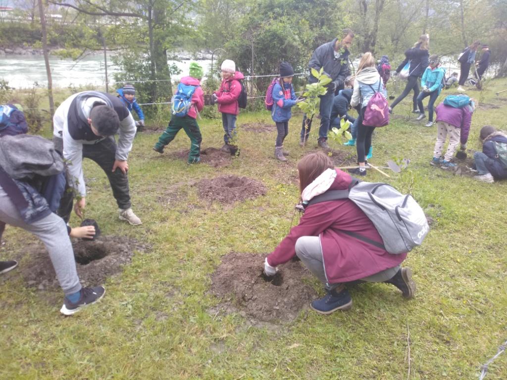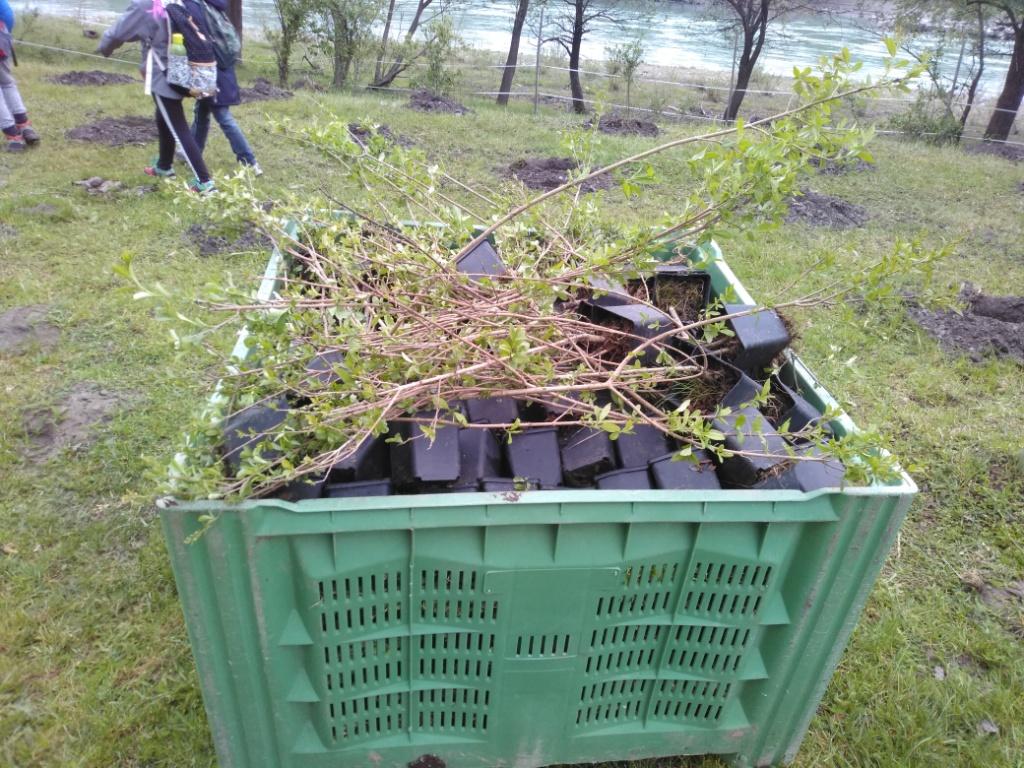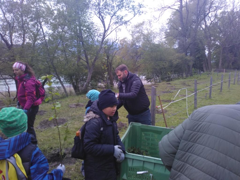 Ziel dieser von der Projektgruppe Lebensraum Gewässer gesetzten Initiative ist eine Neubepflanzung eines festgelegten Abschnittes durch Schüler und Schülerinnen aus allen Schulbereichen. Wir wurden mittels Pflanzanleitung und über einige Vorbereitungssitzungen vom Verwalter des öffentlichen Wassergutes, DI Reinhard Keber, optimal vorbereitet. Vor Ort wurden die Gruppen aus allen Zirler Schulen gemischt eingeteilt und mit Spaten und Handschuhen ging es los. In Windeseile wurde die zunächst übervoll scheinende Kiste mit Setzlingen zusehends leerer und die Projektfläche erschien in neuem Kleid.