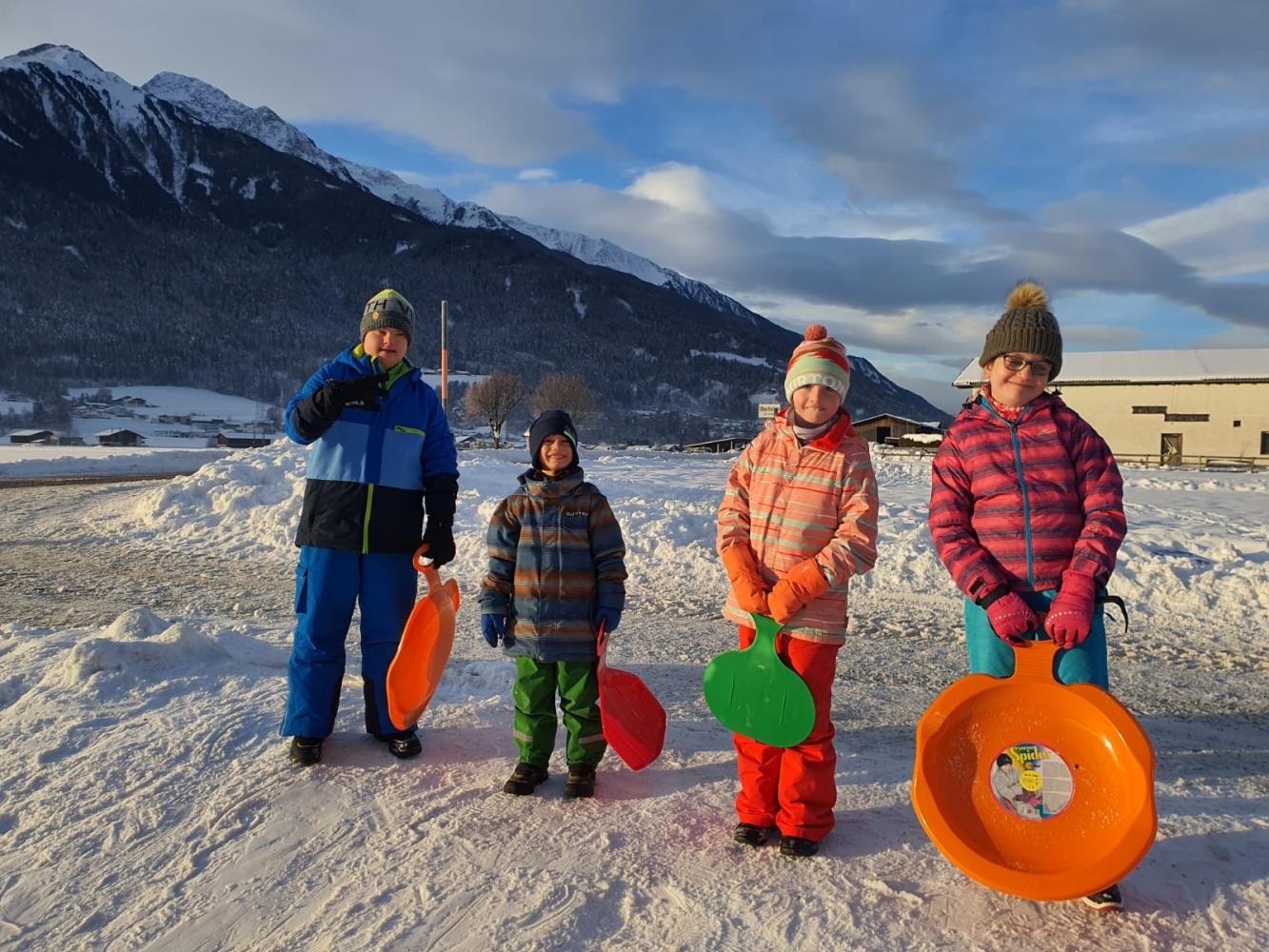 Der perfekte Schnee, das perfekte Wetter, das muss genützt werden. Also schnell rein in die Schihose, ab in den Bus und schon ging's los! In Oberhofen fand die 2E den idealen Rodelhügel und verbrachte dort einen lustigen und sportlichen Vormittag. Alle hatten sichtlich Spaß!
