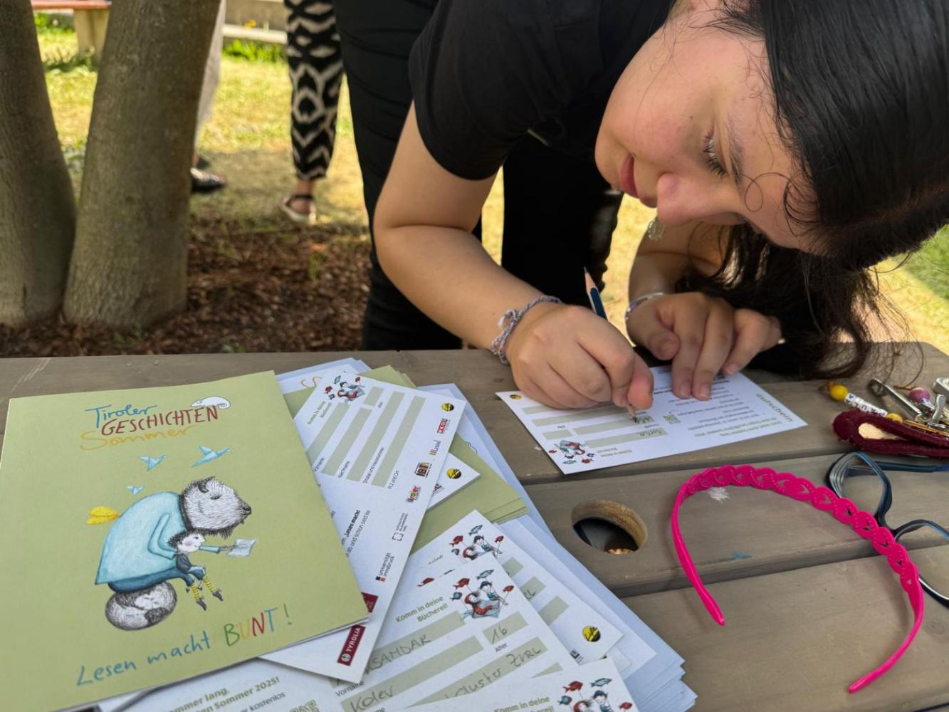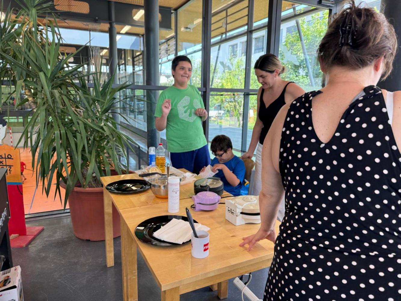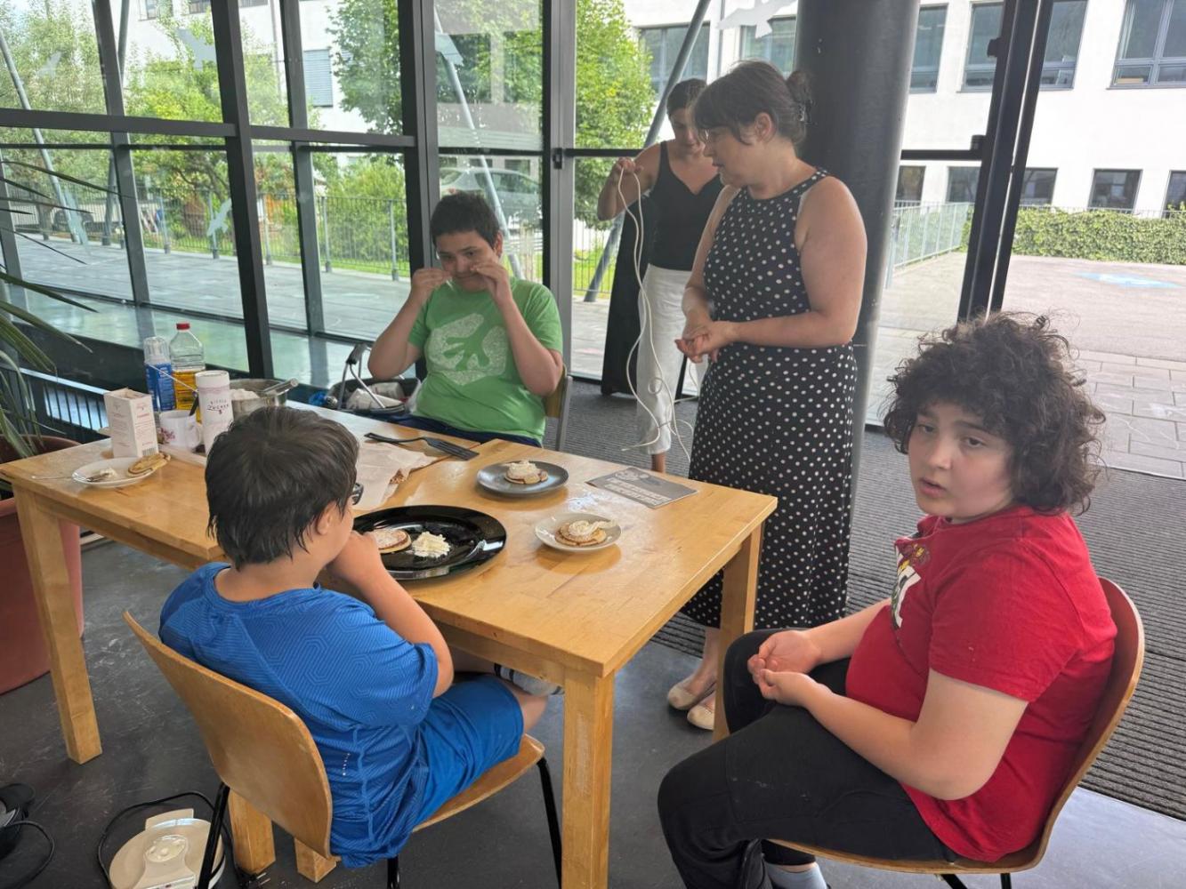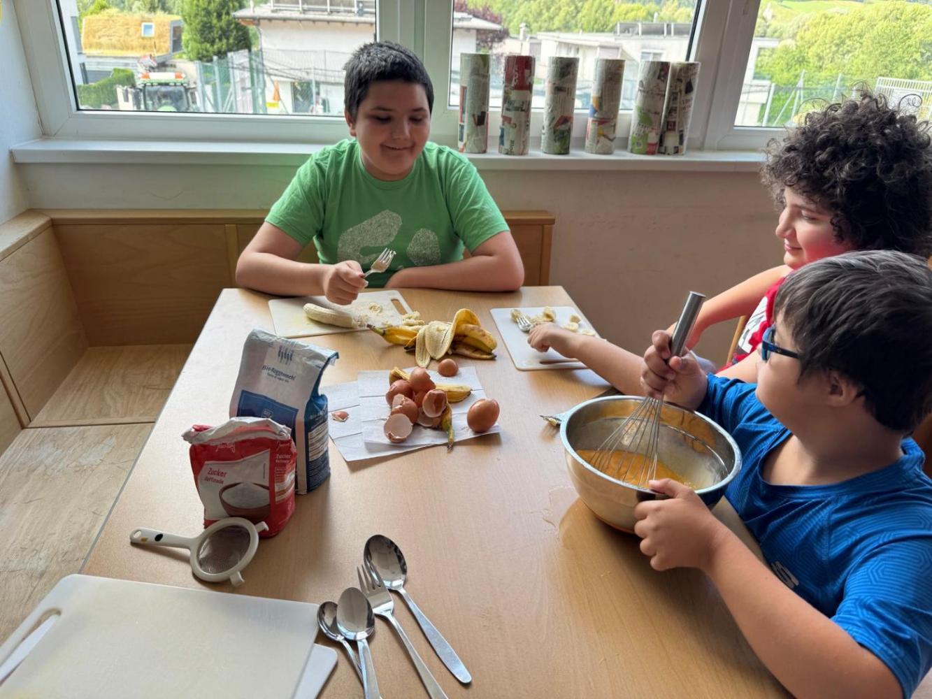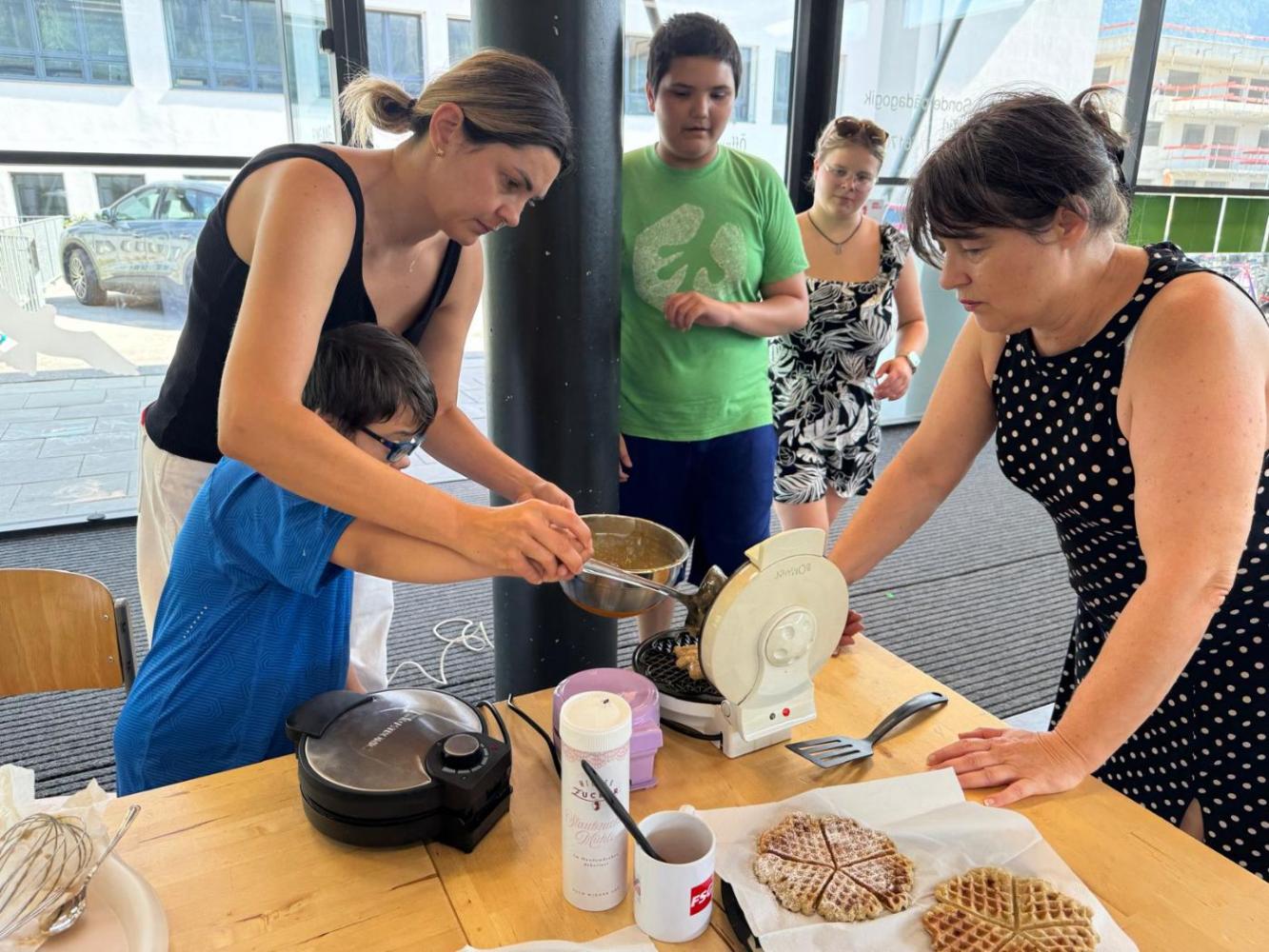 Tiroler Geschichtensommer von Johanna Weithaler 26. Juni 2025 2ASO Schuljahr 2024/25 Bibliothek Gemeinsam mit Lou, unserer Bibliothekarin, backen wir Bananenwaffeln, lernen einen Jausenspruch mit Gebärden kennen und lassen uns die Waffeln natürlich auch schmecken. Toll wars!