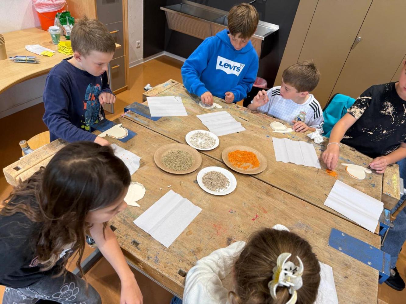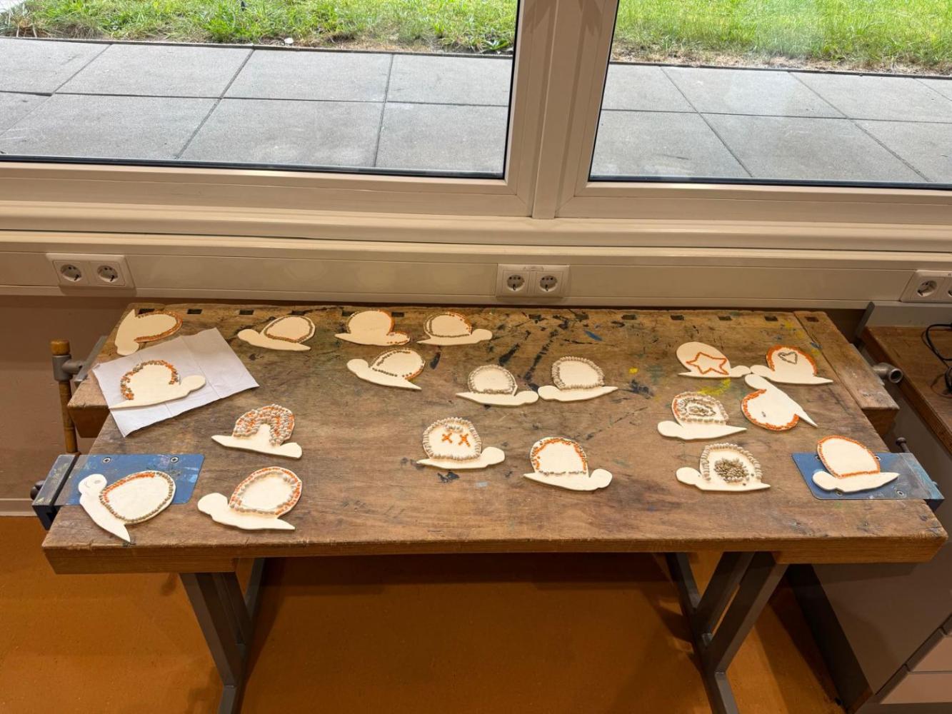 Werken mit Naturmaterialien in der 3d von Johanna Weithaler 04. November 2025 Schuljahr 25/26 3d Nachdem die SchülerInnen die Schnecken in Partnerarbeit ausgesägt und geschliffen haben, entstanden bei fast meditativer Stille sehr individuelle Einzelstücke.