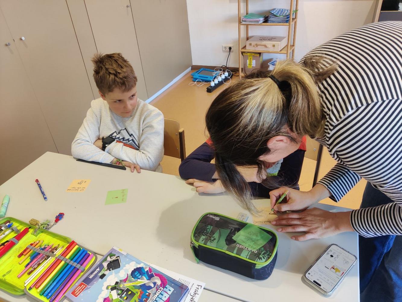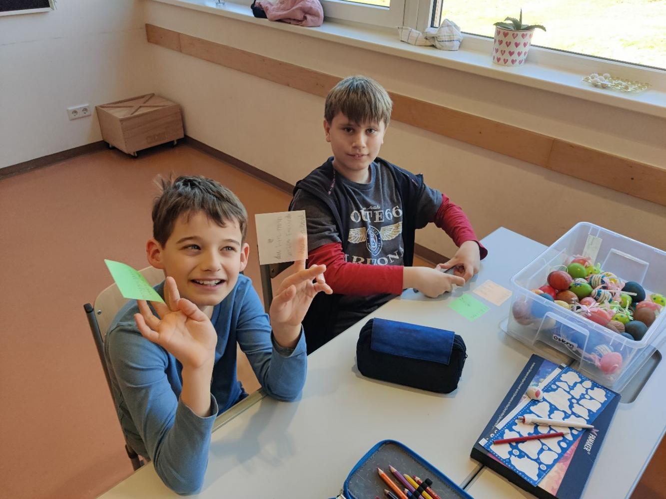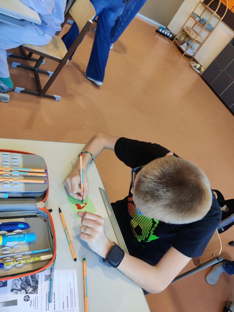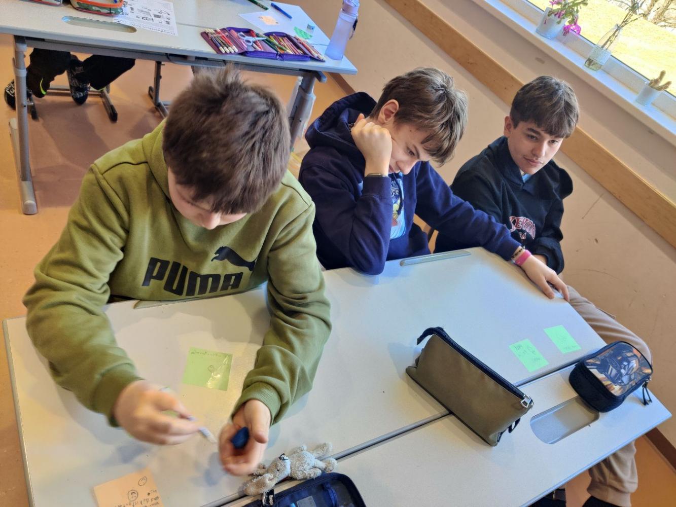 Gemeinsam beschrifteten die ASO3 und die 4d kleine Kärtchen mit motivierenden und wertschätzenden Botschaften, die wir auf einer Wand zentral beim Eingang befestigt haben. Jeder ist eingeladen, sich eine Botschaft als kleine positive Verstärkung zu nehmen, soll aber dafür selbst eine neue Botschaft an der Wand anbringen.