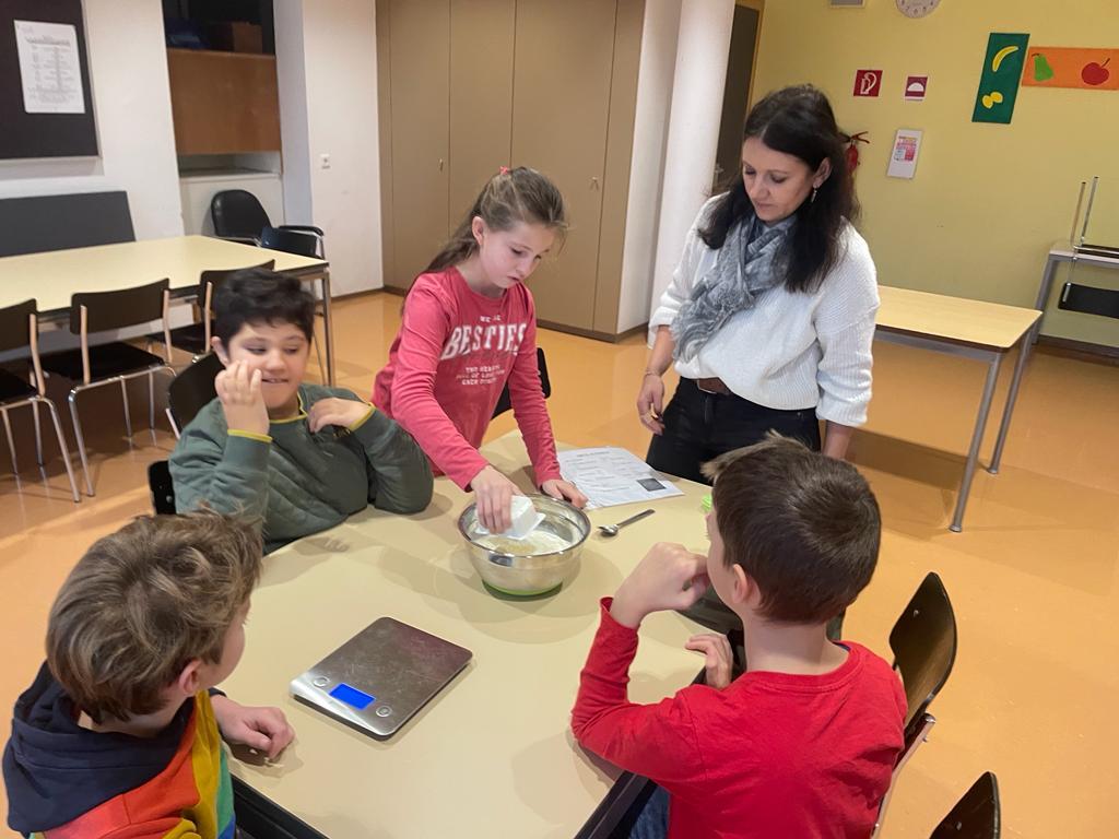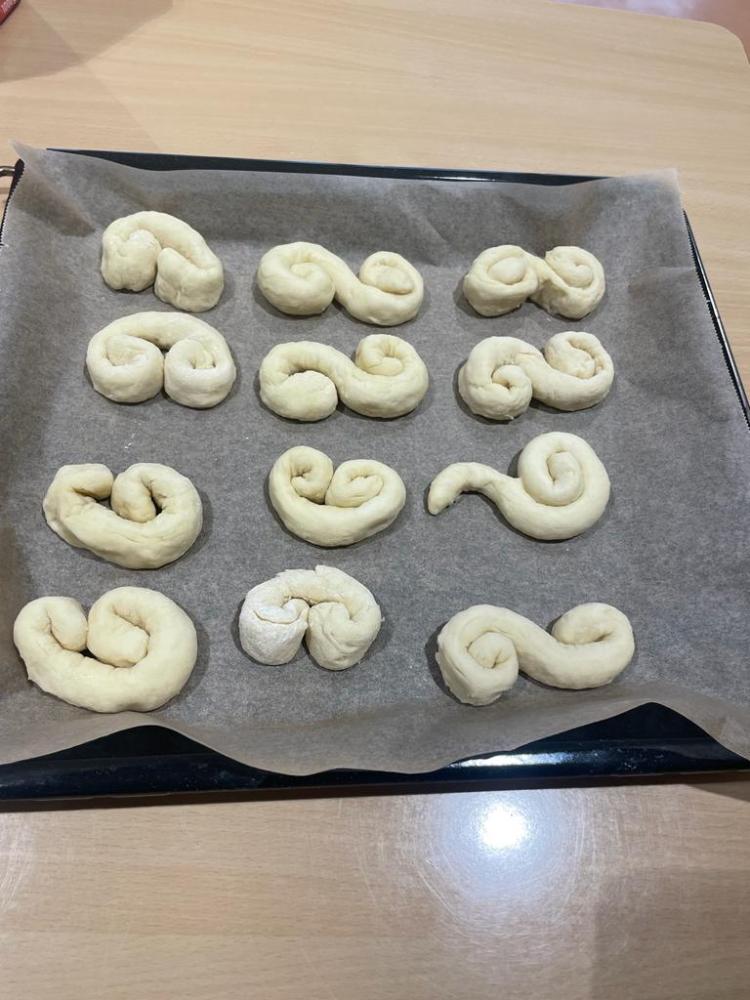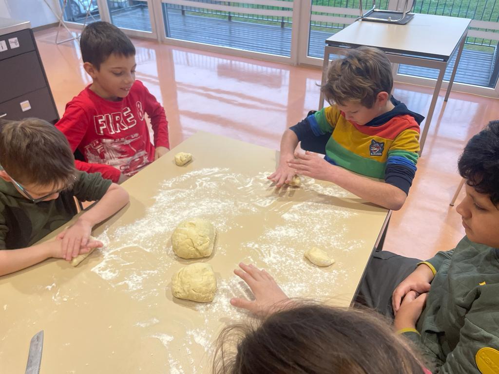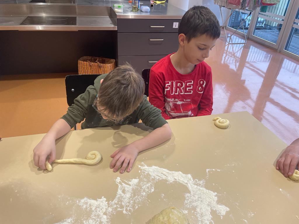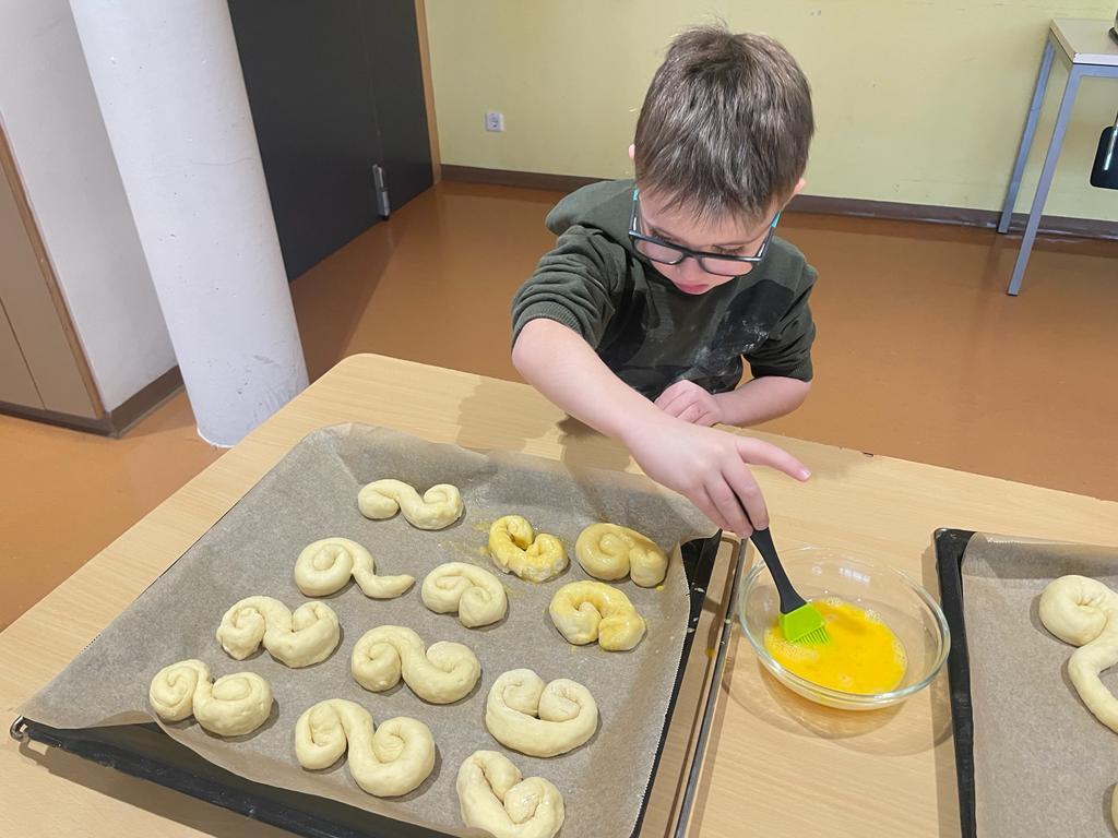 Wir backen Nikolausbrot von Johanna Weithaler 01. Dezember 2022 E3 2023/2024 Schuljahr 2022/23 Zuerst Rezepte lesen, die Zutaten abwiegen und dann kneten und formen. Die E2 hat fleißig gebacken, allen hat es sehr gut geschmeckt!