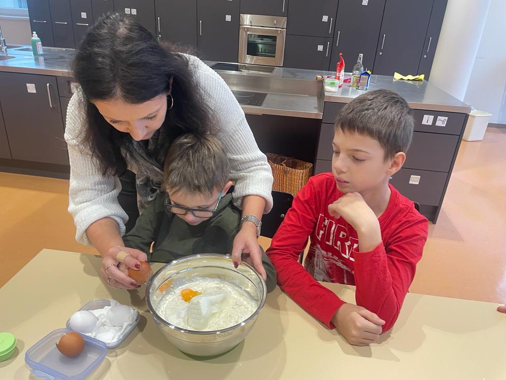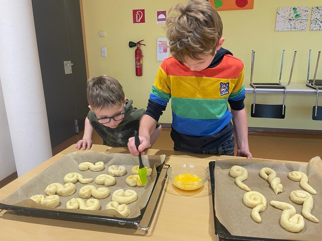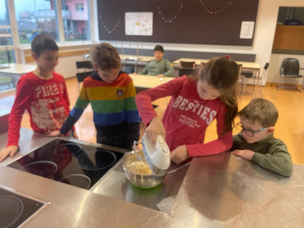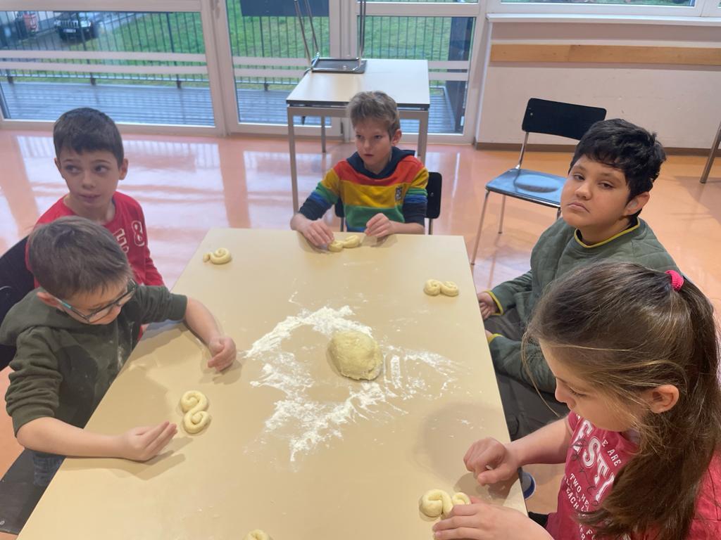 Wir backen Nikolausbrot von Johanna Weithaler 01. Dezember 2022 E3 2023/2024 Schuljahr 2022/23 Zuerst Rezepte lesen, die Zutaten abwiegen und dann kneten und formen. Die E2 hat fleißig gebacken, allen hat es sehr gut geschmeckt!