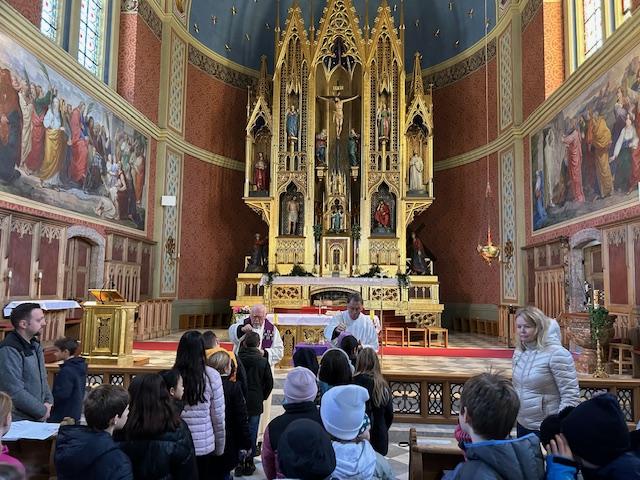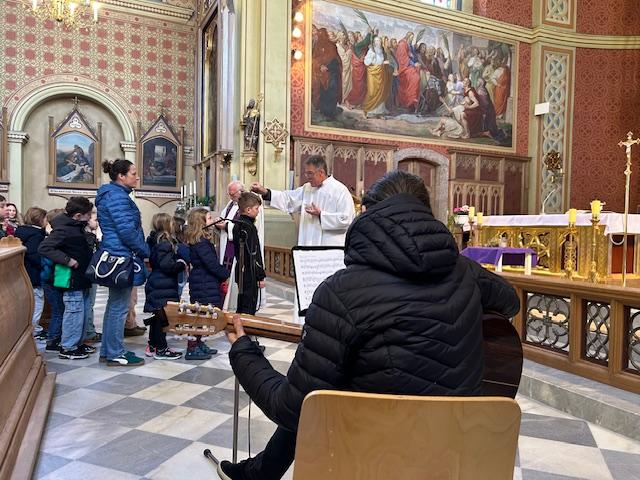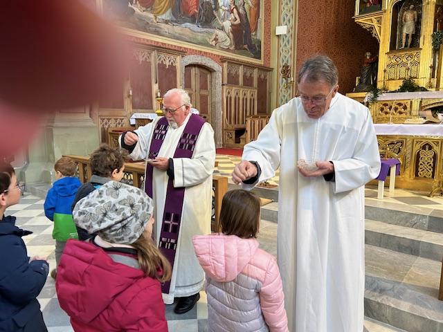 Nach der Segnung der Asche bekamen wir mit der Asche ein Kreuz auf die Stirn gezeichnet. Das Aschenkreuz will uns an Jesus erinnern. Wir sind eingeladen, die kommenden Wochen der Fastenzeit mit Jesus zu gehen, auf sein Wort zu hören und viel Gutes zu tun.